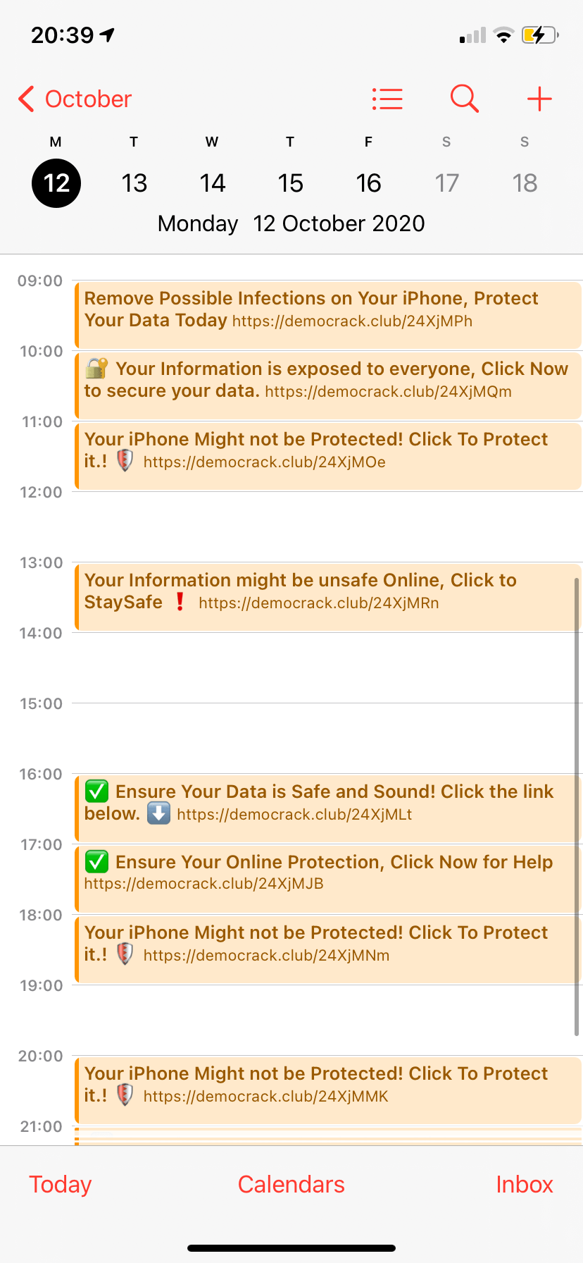 It appears this is the latest way to spread spam. It’s quite possible you’ve accidentally wandered into a common form of scam: Hackers have found creative ways to invade your iphone in hopes you’ll click on embedded links or attachments, and many people don’t realize their calendar can. My calendar keeps adding scam messages automatically and no one has access.