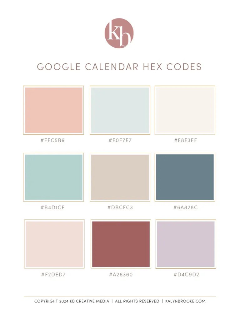 These Downloadable Google Calendar Hex Codes Provide A Calming + Cohesive Experience.