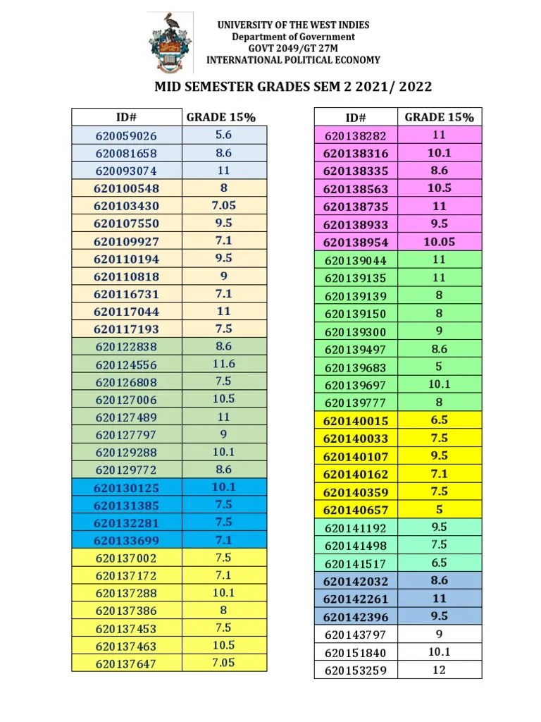 Govt 2049 Mid Semester Grades 2022 PDF