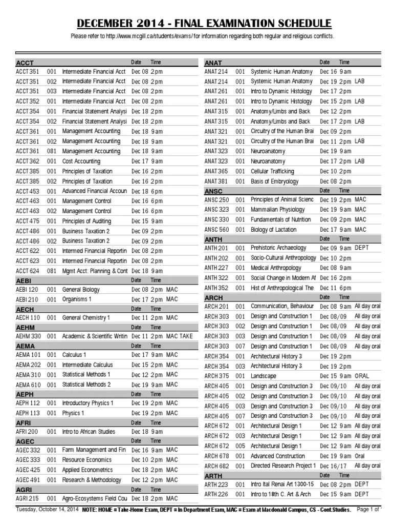 December 2014 Final Exam Schedule PDF Teaching Mathematics Mathematical Analysis