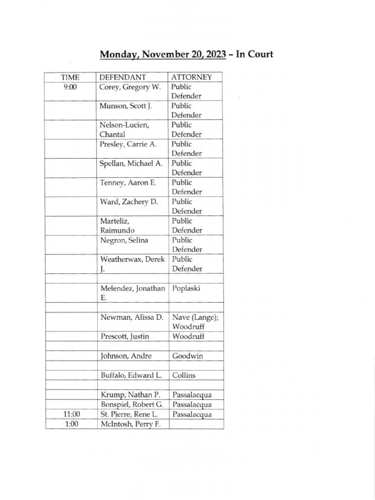 Jefferson County Court Calendar Nov. 20, 2023 PDF