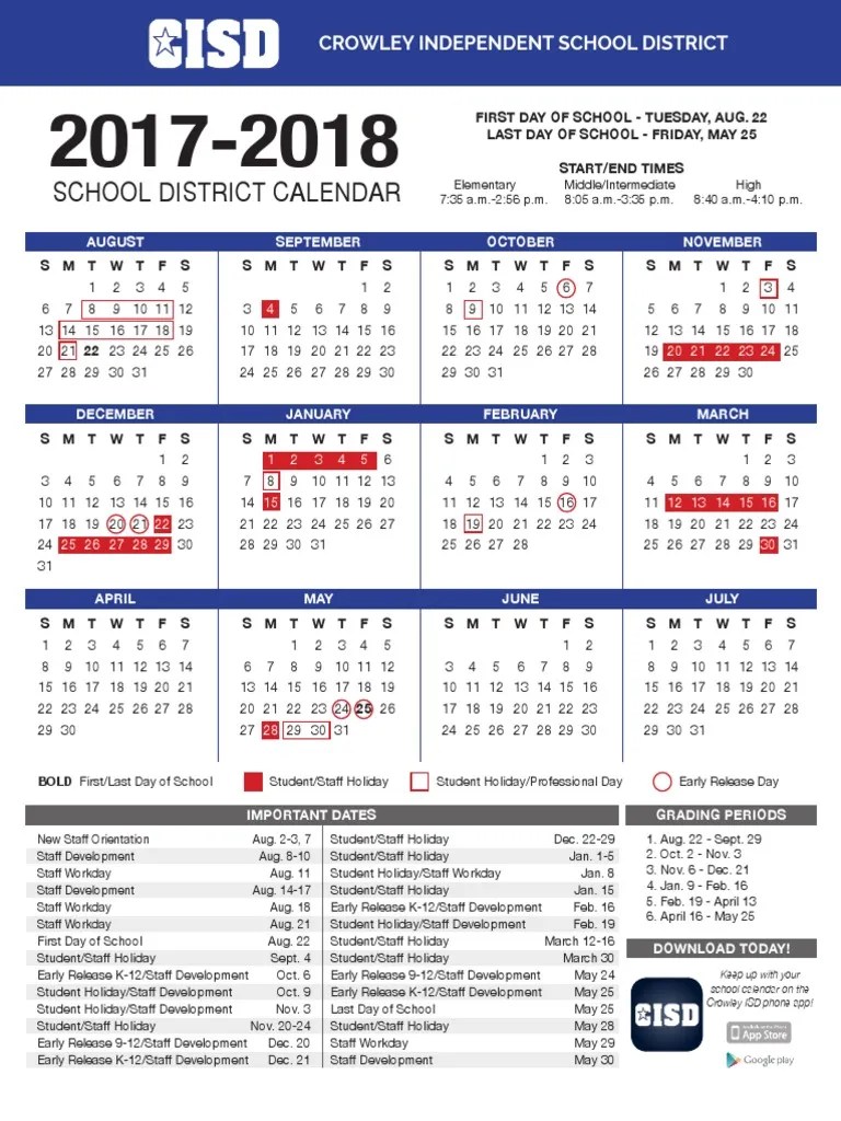 District approval came after a survey presented two different proposed calendars to. Keep up with your school calendar on the crowley isd phone. Keep up with your school calendar on the crowley isd phone app! Developing crowley isd’s school calendar is a collaborative process and takes several months. State and federal holidays january 2025 through december 2025 jan 1, 2025.