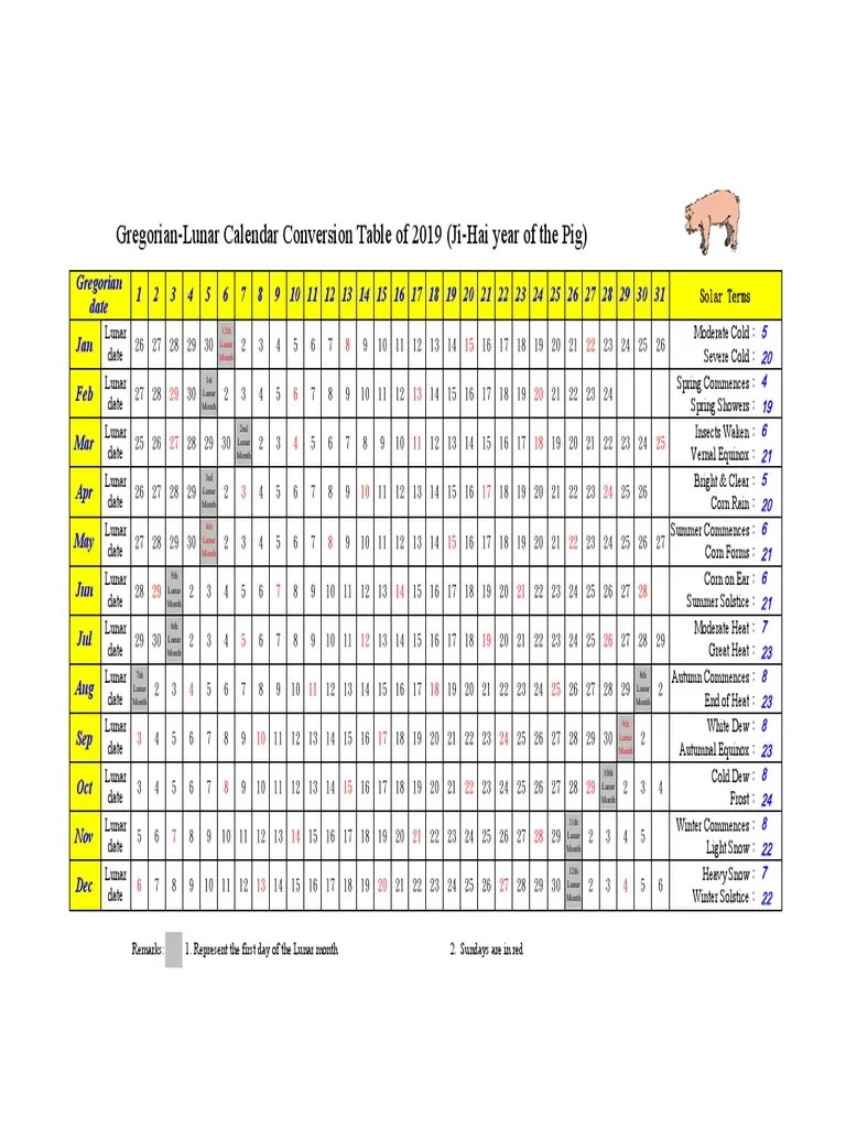 GregorianLunar Calendar Conversion Table of 2019 (JiHai Year of The Pig) PDF Nature