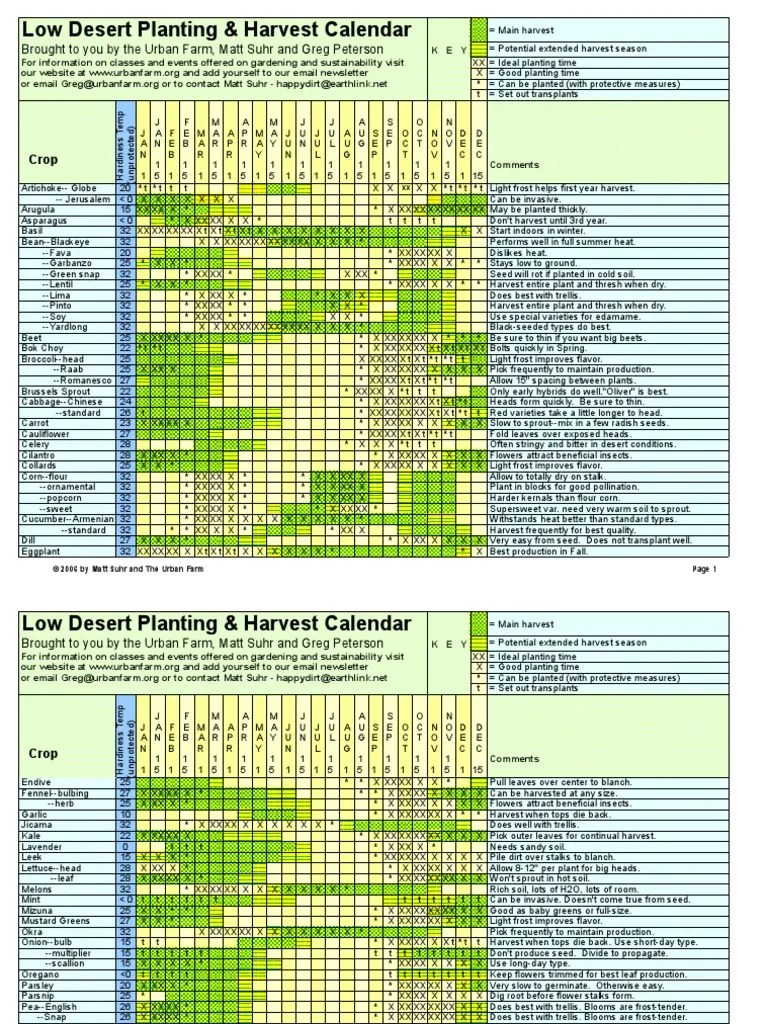 Low Desert Planting & Harvest Calendar Brought To You by The Urban Farm, Matt Suhr and Greg