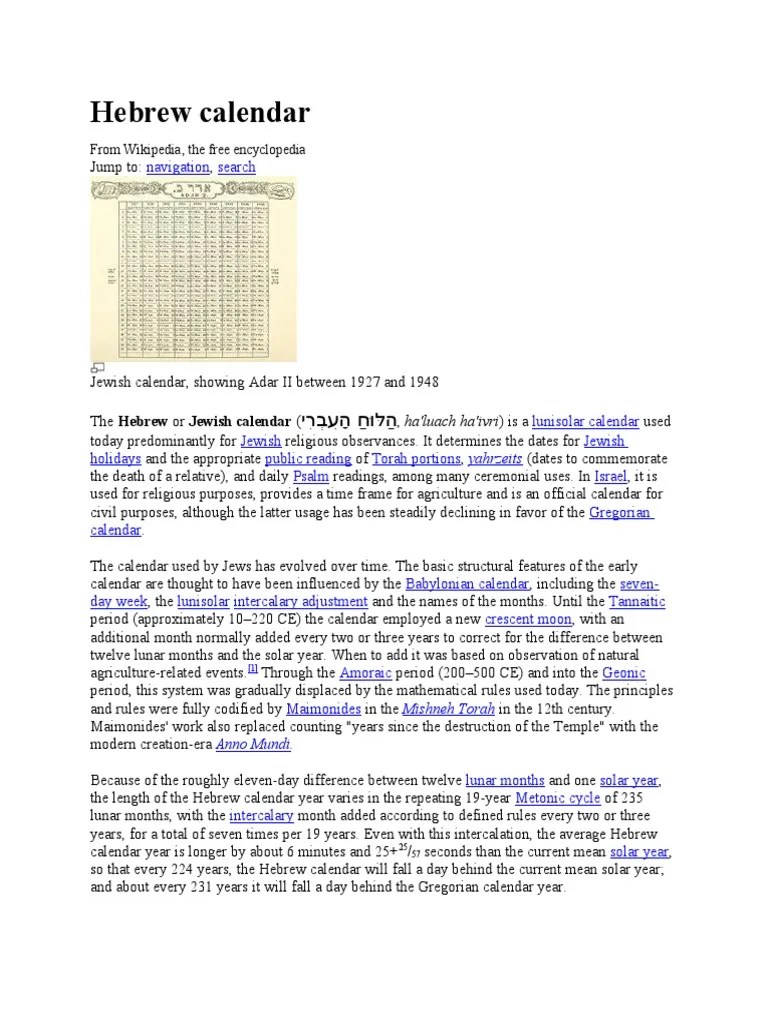 Hebrew Calendar Download Free PDF Hebrew Calendar Calendar