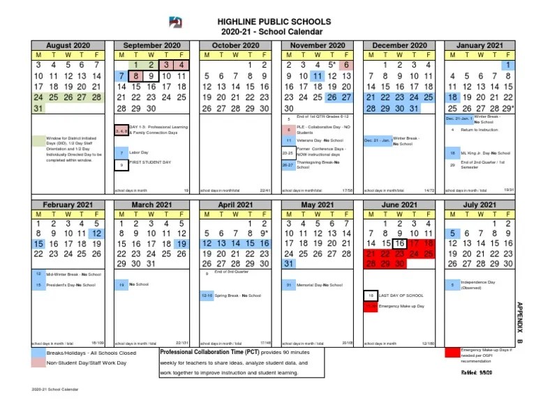 202021 School Calendar News Details Highline Public Schools