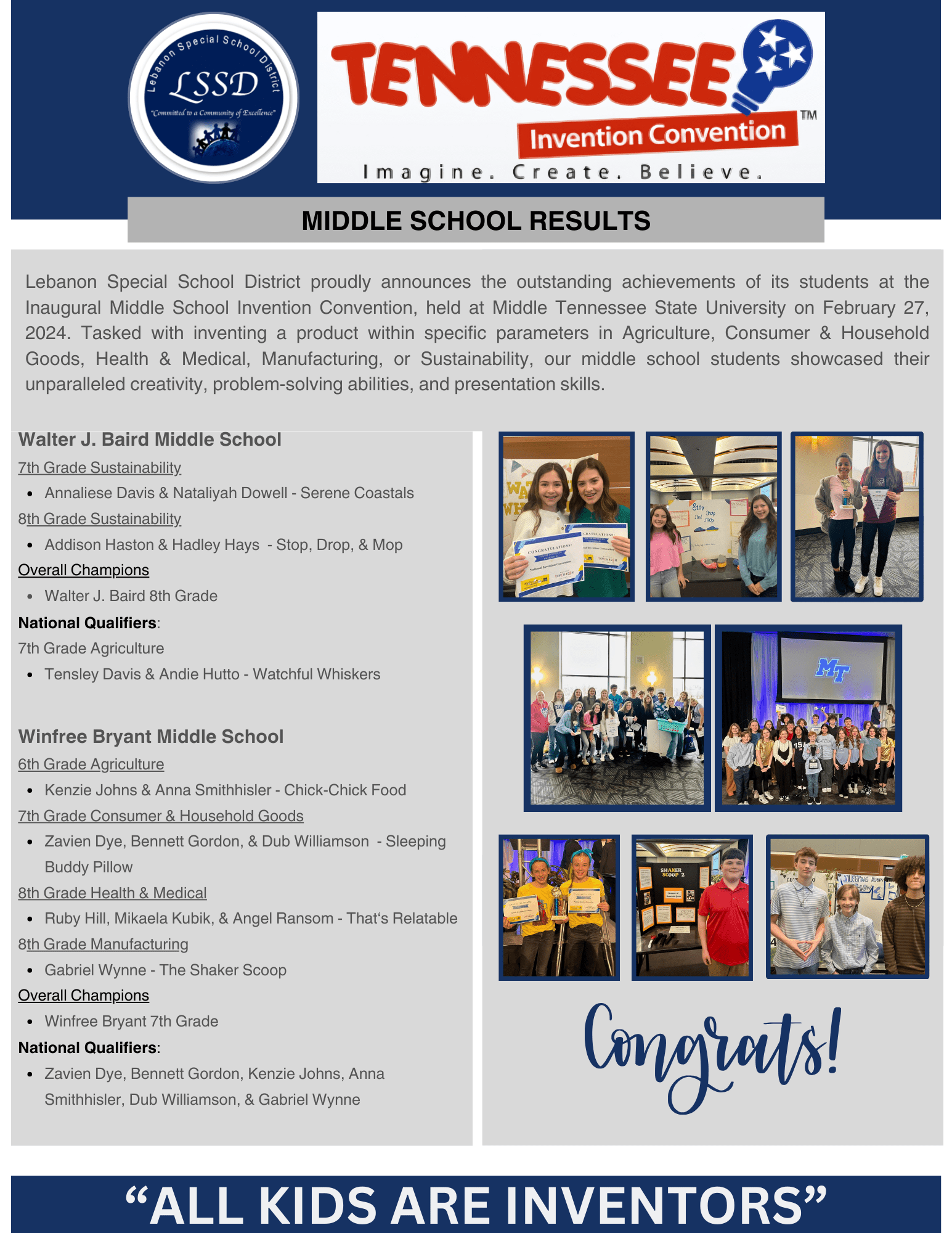LSSD Middle School Students Shine at the Inaugural Middle School Invention Convention Lebanon