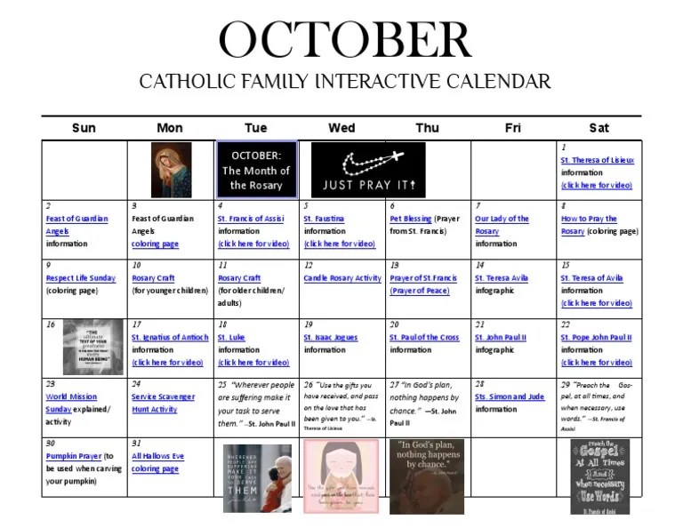 Catholic Calendar October 2021 Printable Blank Calendar Template