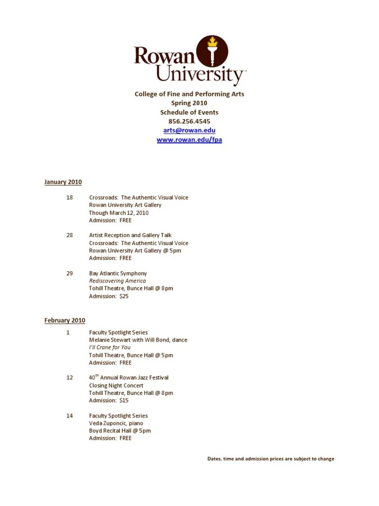 Rowan Arts Spring 2010 PDF Concert Performing Arts