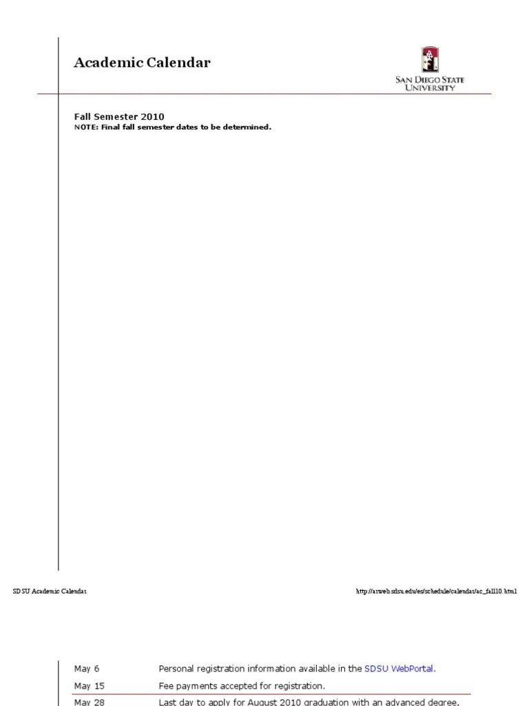 SDSU Academic Calendar PDF Thesis Postgraduate Education