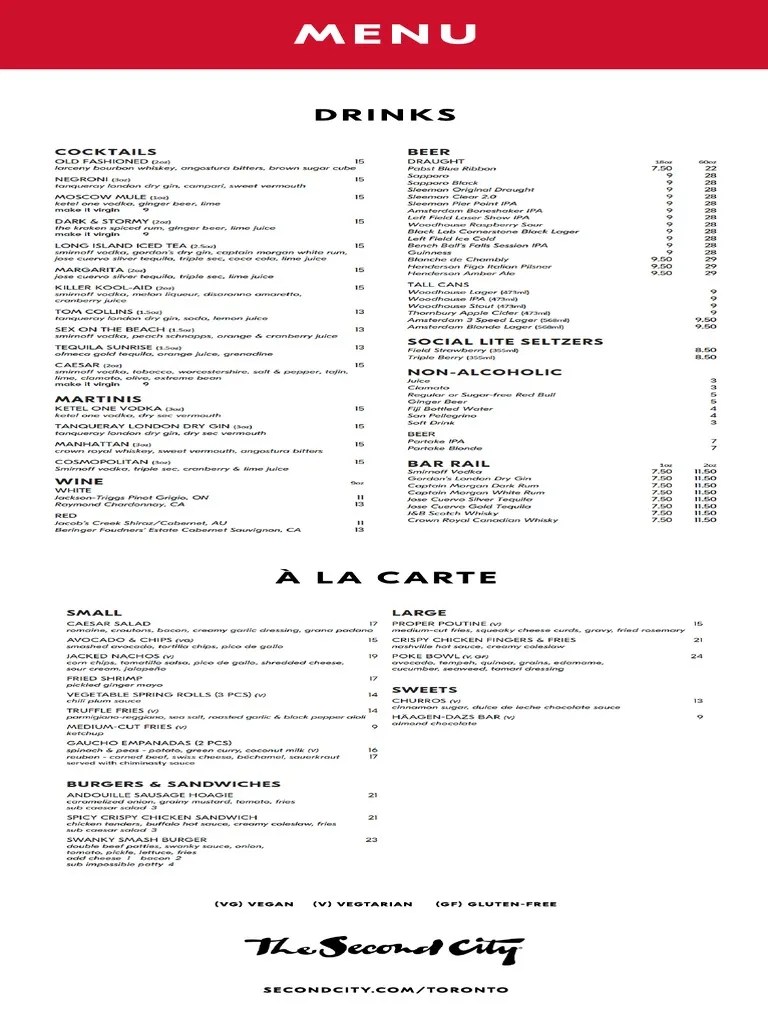 Menu v2 2023 The Second City PDF