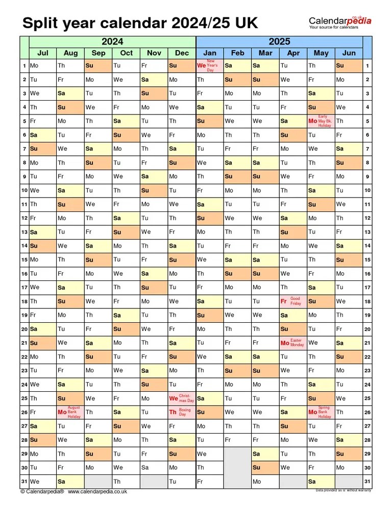 Choose from four templates with us. Fiscal/academic split year july 2024 to june 2025 horizontal 12. Jul 4, 2024 independence day nov 11, 2024 veterans day jan 1, 2025 new year's day may 26, 2025 make up daysmemorial day sep 2, 2024 labor day. 2024/25 split year calendar july 2024 (17) august 2024 (7) september 2024 (19) su mo tu.