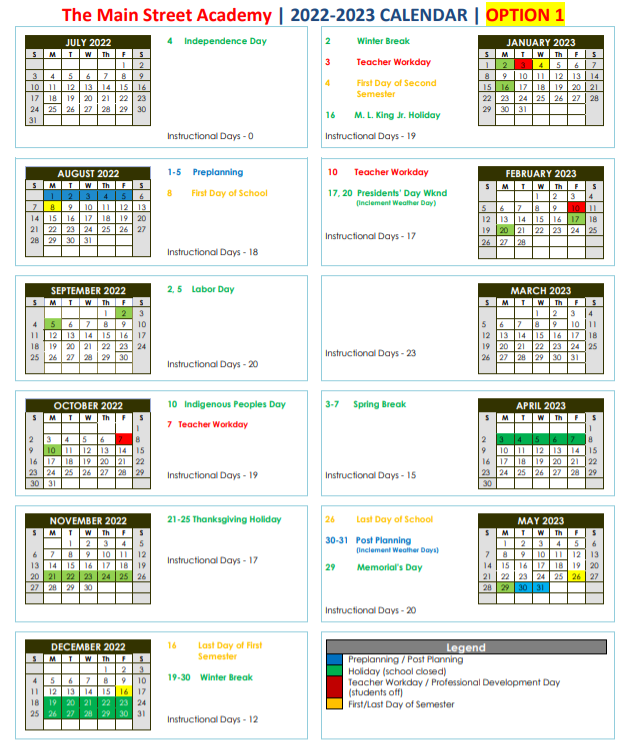 Governing Board Approves the TMSA 2022 2023 School Calendar The Main Street Academy