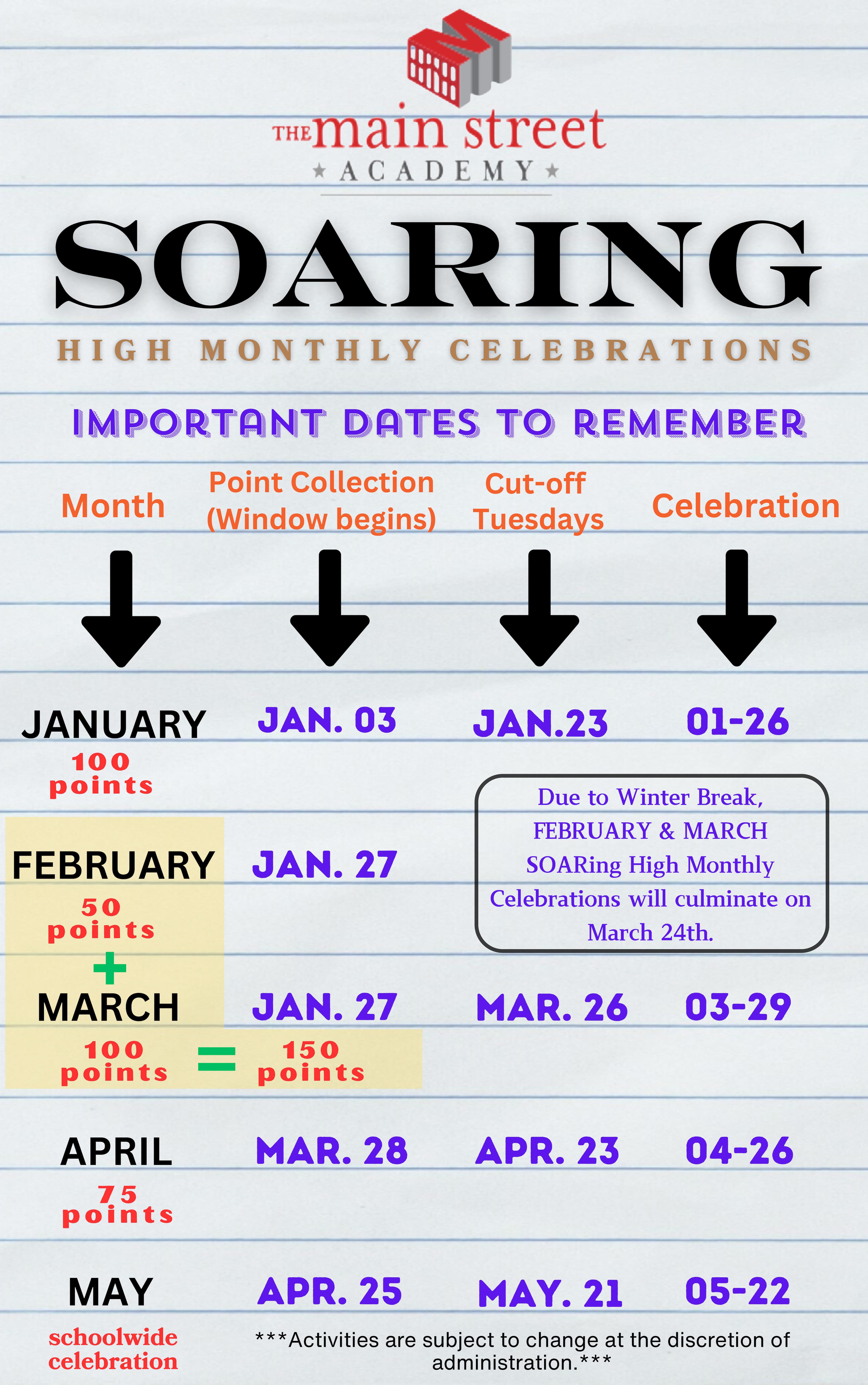 TMSA's 2nd Semester ('23 '24) SOARing High Celebrations Schedule The Main Street Academy