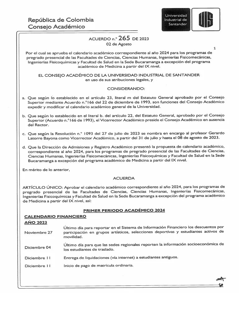 Estudiante UIS, este es el calendario académico para el periodo 20241 Comunicaciones UIS