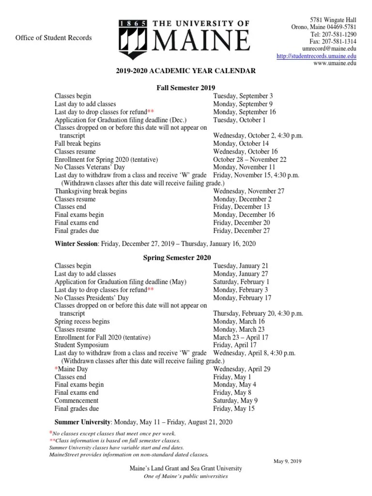 Calendars, catalogs, and degree programs. Class information is based on full semester classes. University of maine system academic calendars. Follow this link to return to the registrar's office primary directory